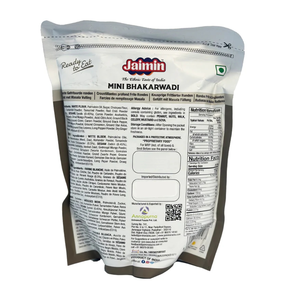 Jaimin Mini Bhakarwadi is a delicious traditional snack known for its unique spiral shape and irresistible sweet, spicy, and tangy flavour. Made with a flavorful filling of spices and herbs wrapped in a crispy outer layer, these bite-sized bhakarwadis deliver a perfect balance of taste and crunch.